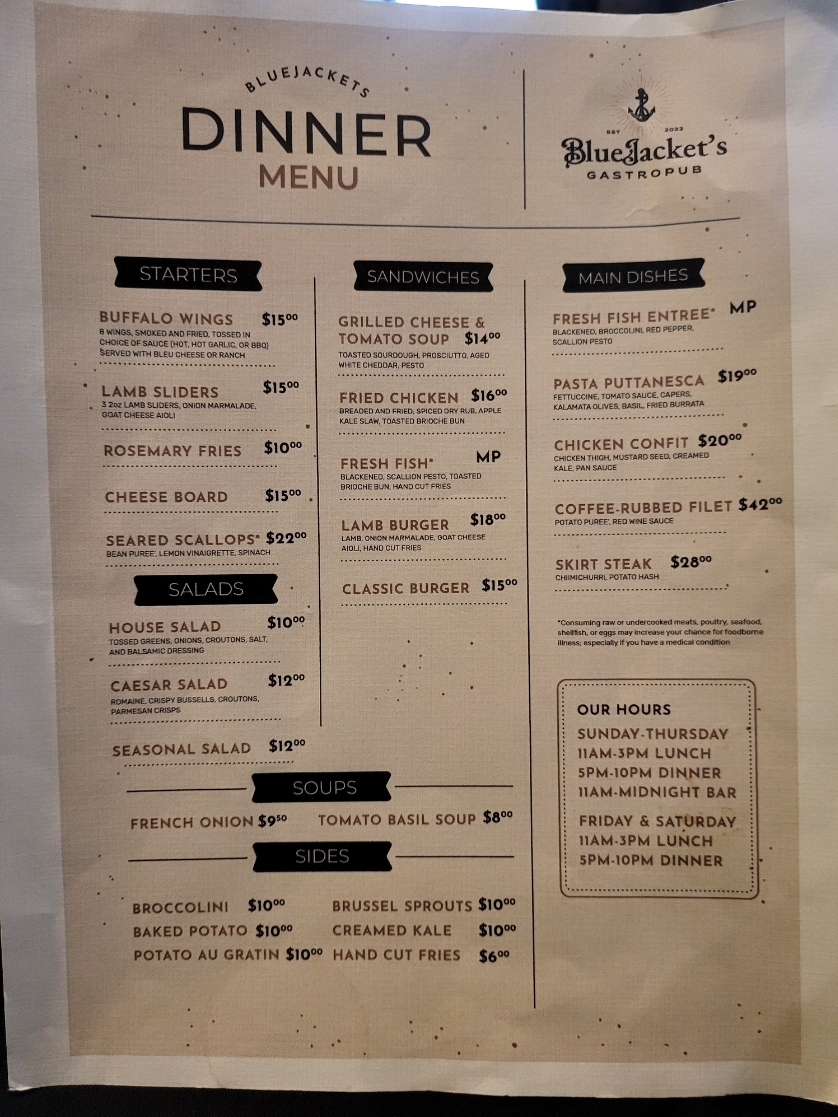 The ambiance is casually upscale, making it perfect for any occasion. With attentive service and a commitment to quality, Blue Jacket's Gastropub promises an unforgettable dining experience that you will crave to revisit.